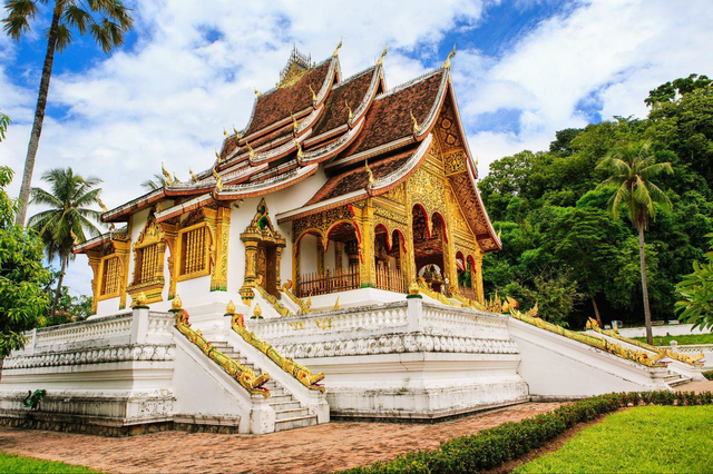 早餐后,参观【大皇宫博物馆】皇宫博物馆 1904 年建造,老挝西萨旺冯国王的皇宫,参观国王的 议政厅、起居室、餐厅、娱乐室等,重点参拜琅勃拉邦名称的拉邦佛(由高棉国王赠送的金佛,尤为宝贵),