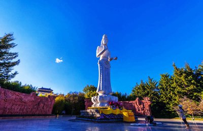 3、阿嵯耶观音像:这是岛上的标志性建筑,高达17米。站在观音像下,能俯瞰整个洱海,景色绝美 。