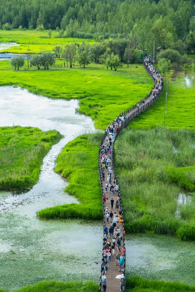 后乘车前往游览【万亩草海】,芦苇如墙,水路错综,漫步摩梭【走婚桥】,据说相恋的男女一起走过长长的走婚桥,爱情就会天长地久,走在婚桥上,微风一吹,扬起纷飞的花絮,像仙女撒下雪白花瓣。