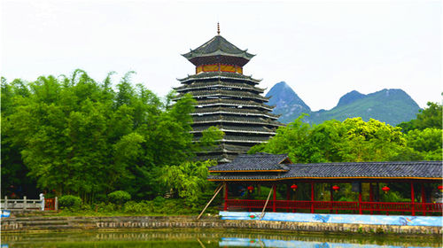 刘三姐大观园坐落在美丽的桃花江畔,园内有侗家鼓楼、刘三姐故居等景观,浓缩了多个民族的文化风情。除了欣赏大观园内优美的山水园林景观,还可以和身着民族服饰的阿姐一起对歌、跳竹竿舞,或者参与抛绣球、民族婚礼等环节,身临其境地体验民族风情。