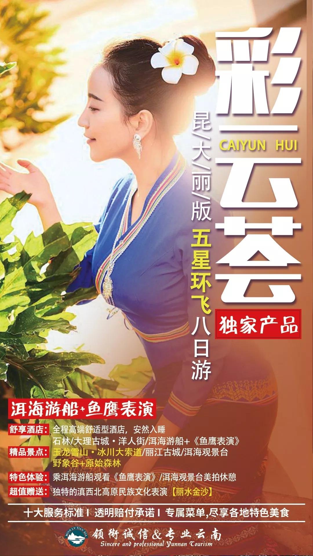 ▲“彩云荟 ”专属菜品云南美食,拥有一种藏在山水间的原味,就地取材,却不同食法。料广,色美,型巧,味全,看者胃开,闻者流涎,食者回味……你的味蕾,将从这里开始体验一场真实的美味之旅。▲“彩云荟 ” 十项服务标准+透明赔付承诺膳食——正规餐厅,定点用餐,菜单明示,确保品质 住宿——指定酒店,干净卫生,安全舒适,临变升级车辆——正规营运,四年之内,干净舒适,安全保障 接送——规范接机,随到随走,便捷送机,贴心送机司机——正规资质,着装整洁,持证上岗,安全驾驶 导游——正规资质,着装整洁,佩证上岗,规范服务景点——景点固定,不增不减,精华景区,时间充裕 购物——土特商品,货真价实,自由选购,自主消费自费——项目明确,价格透明,自愿原则,自主消费 质量——专人专线,即时处理,质量问题,限时反馈以上服务一旦出现问题,客人对我社处理结果不满意,现场赔付1000元/人/项。▲“彩云荟 ”安心出行设计● 全程空调旅游大巴,一人一正座。知识渊博、幽默的导游将带你一同游行趣味云南,为您提供专业导游服务的同时贴心为您解决旅程所遇一切问题;驾龄丰富的司机将为此趟精彩行程保驾护航,让您乘坐安心。 ● 我们为每一位游客购买云南旅游组合保险,多重安全保障,让您出行无忧。