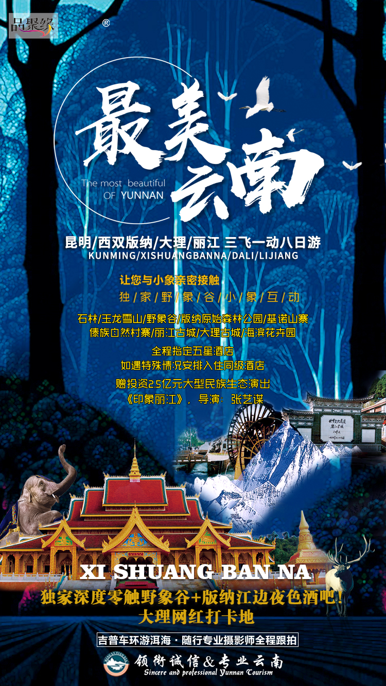 【彩云荟】昆明、大理、丽江、版纳环飞8日游
