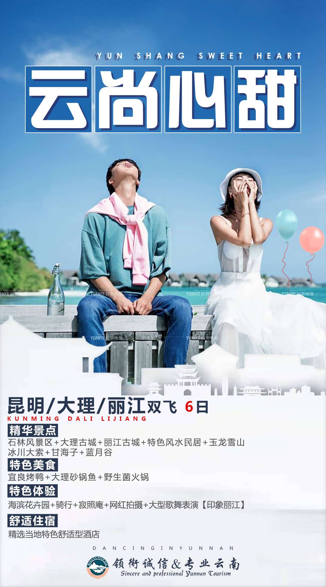★酒店:全程三钻酒店安宁升级一晚温泉度假★网红:网红海埂大坝带你在滇池畔西山下享受面朝大海春暖花开的悸动;网红花醉艺术空间让你远离喧嚣,在诗和画的背景里享受悠然的时光;★美景:玉龙雪山、蓝月谷、苍山、洱海、南召风情岛、石林5A级景区,漫溯七彩云南的宝藏美景,让你的假期没有遗憾;★人文历史:除了美景外,我们更为你增加了大理古城、丽江古城,在欣赏美景的同时,让我们看云南多样的民族风情,倾听每片砖瓦为你讲述的故事;★美食:保证全程用餐,品尝云南的地道口味;★礼遇:1、鲜花接机;2、每天一瓶矿泉水;3、赠送鲜花铺床(凭结婚证,新婚一个月内,或当月为结婚周年可申请赠送);4、赠送昆明至大理的动车票,告别枯燥漫长的大巴路程;5、24小时管家1V1服务,为你解决一切烦恼;★购物:告别云南市场固有的买买买,全程一站购物,昆明文化展示中心,让你买的放心、买的物超所值;★承诺:郑重承诺全程一店一集,全程门票已含!