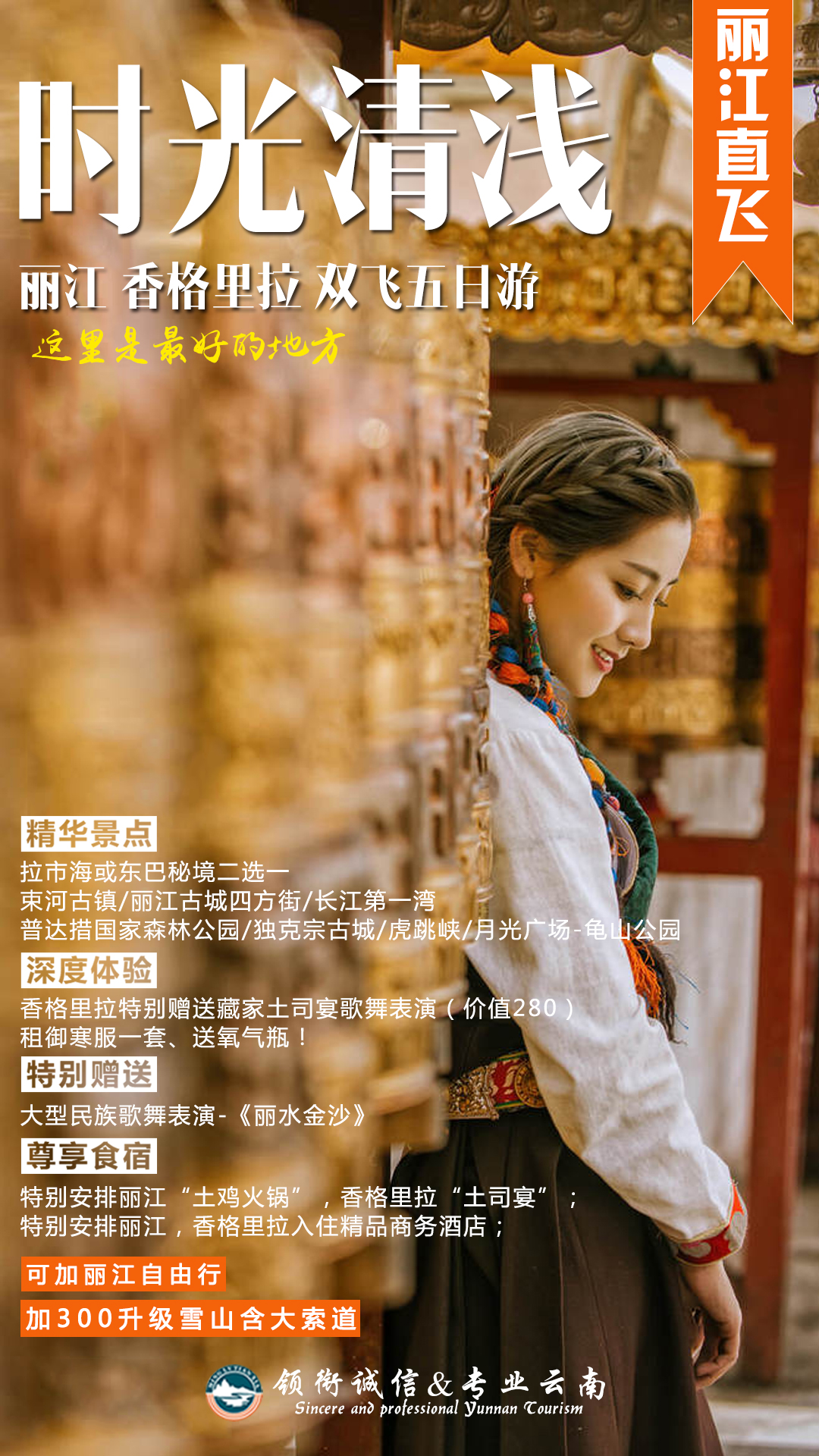 【时光清浅】丽江香格里拉双飞4晚5日游(可升级雪山线)