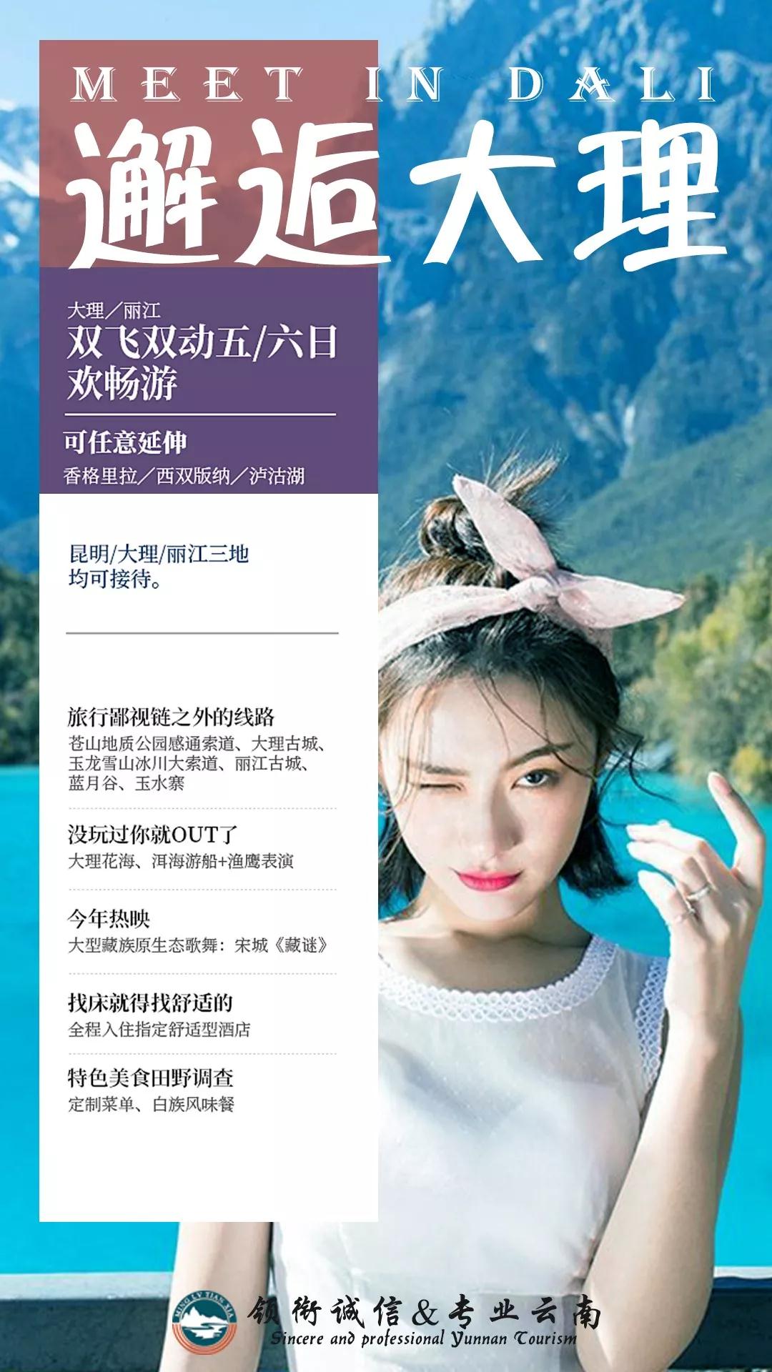 【行程解读】体验醉美洱海风光【Jeep车环海】云南第一个以“湿地”命名的自然保护区【拉市海】【行程亮点】别致旅途.各段最精华景点:大理古城+Jeep车环海+丽水金沙表演+小中甸牧场特色美食:云南各段民族特色美食,打造专属定制菜单,菜品不重复,跟踪膳食质量,安全放心。
