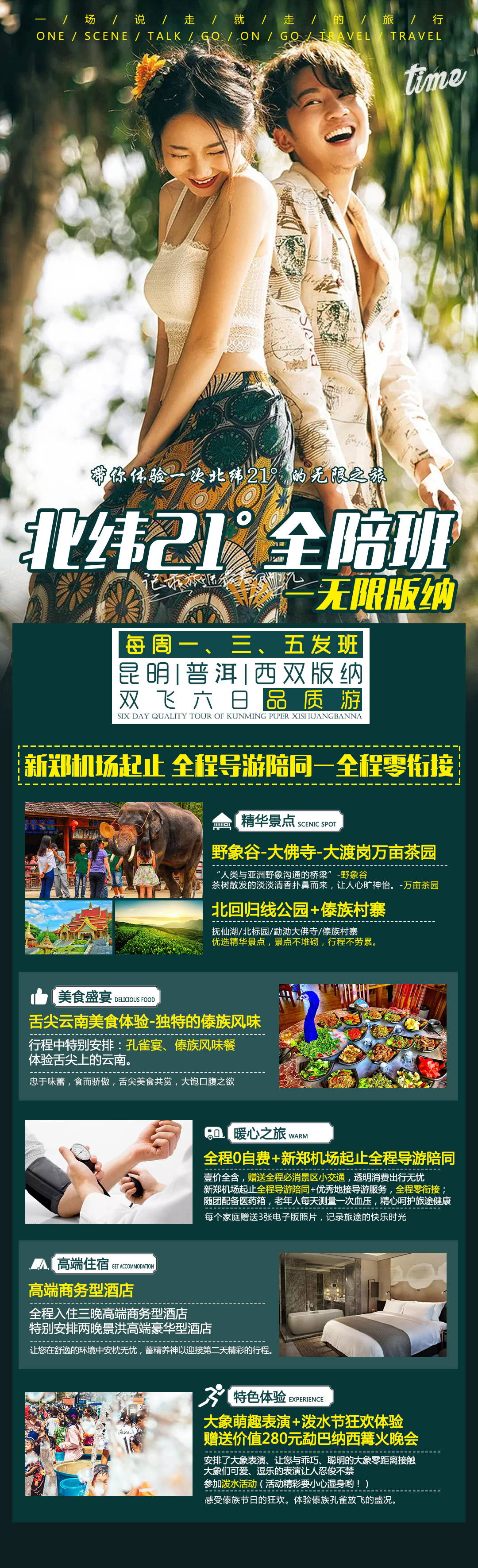 全陪班【北纬21度】-昆明、普洱、西双版纳双飞六日游