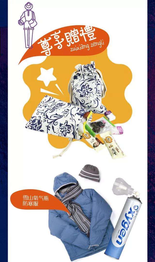 5.赠送雪山防寒服+氧气瓶+矿泉水