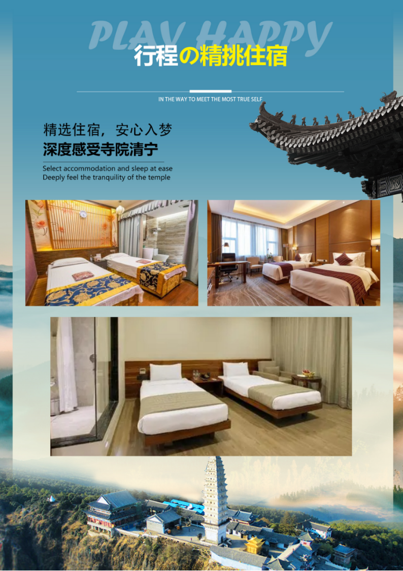 膳食——正规餐厅,定点用餐,菜单明示,确保品质 住宿——指定酒店,干净卫生,安全舒适,临变升级