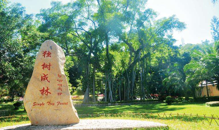 15:30游览【独树成林】(游览时间30分钟)独树成林位于打洛镇边境贸易区内的曼掌寨子旁,距离打洛镇政府以南3.5公里,靠近中缅边境的地方。这是一棵古榕树,有900多年的树龄,共有34个根立于地面,树高50多米,树幅面积2000多平方米,枝叶既像一道篱笆,又像一道绿色的屏障,成为热带雨林中的一大奇观,打破了"单丝不成线,独树不成林"的俗语。