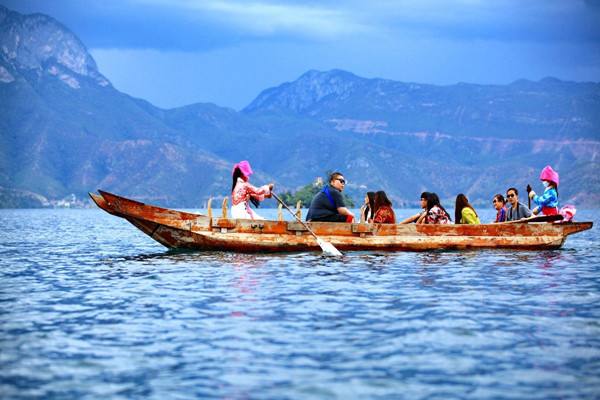 早餐后,乘车前往秀丽风光,有神秘“东方女儿国”之称的泸沽湖。首先到达【泸沽湖观景台】(游览40分钟)。观景台是拍摄泸沽湖全景最好的地方,视野开阔,整个湖面尽收眼底,是摄影师最钟爱的拍照天堂之一。之后【乘坐猪槽船】在泸沽湖泛舟(约20分钟),一面听摩梭女们大展歌喉,一面远眺雄伟的格姆神山,沿途登上“蓬莱三岛”之一的【里务比岛】(游览约40分钟),它与吐布半岛将泸沽湖一分为二,美丽的花丛尽头是藏传佛教寺院里务比寺。傍晚邀您一起参与【摩梭走婚宴】(200费用已含),摩梭族阿哥阿妹围着篝火边唱边跳,也会邀请您一同参与其中,伴随着快乐的歌声,晚入住酒店,歇息在泸沽湖的怀抱中。