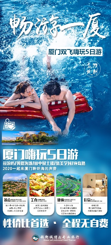 早餐后前往【南普陀寺】:参观八闽古刹,香火顶盛—南普陀寺,南普陀寺位于福建省厦门市东南五老峰下,面临碧澄海港,该寺占地面积25.8万平方米,建筑面积2.1270万平方米。始建于唐朝末年,称为泗洲寺,宋治平年间改名为普照寺,明朝初年,寺院荒芜,直到清朝康熙年间才得到重建。因其供奉观世音菩萨,与浙江普陀山观音道场类似,又在普陀山以南而得名"南普陀寺",为闽南佛教胜地之一。参观【玉石文化展览馆】。中餐后,乘渡轮登【鼓浪屿】,漫步鼓浪屿,遥看远处具有“小白宫”美称的八角楼,沿万国建筑博览线参观【英、日领事馆、黄送远堂、天主教堂】.领略古今中外别具风格的各式建筑,这里是鸦片战争后中国一百多年历史的浓缩,老别墅、洋教堂、钢琴声、三角梅、林荫、天主教堂照照相、港仔后沙滩玩玩水,游览为纪念卓越的人民医学家林巧稚教授而建的【毓园】,背着相机在鼓浪屿的小巷子里浪一浪,寻找属于自己的焦点,发现那些不经意的美,找一个自己心仪的地方要一杯自己喜欢的咖啡或铁观音,听着海的声音闲坐着,和趴在矮矮的围墙上晒太阳的小猫作伴,慢慢的打发时间....记得傍晚是鼓浪屿一天中是最迷人的时刻,一定要到处走走,听海涛、吹海风………