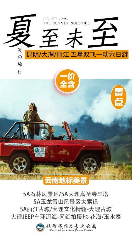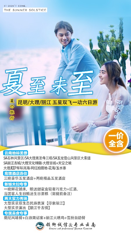 5、 云南地处高原,旅途辛苦,且行程中医疗条件有限,旅游者在签订合同、接受旅游服务时,应确定自己的身体健康状况适合参加本次旅游活动,6、 请自备高原旅游必需品。