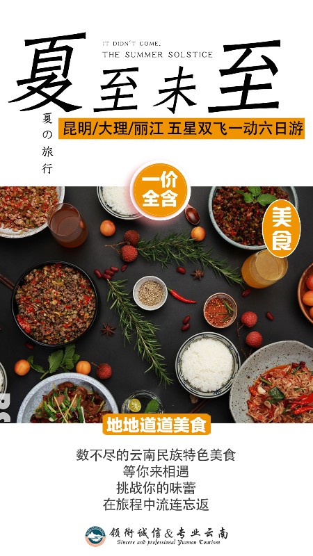 4、 我社依法选择合格且具备相应资质的供应商(酒店、餐厅、景区、旅游车等),游客通过阅读旅游行程安排,完全同意关于旅游产品的餐厅、酒店、景区、旅游车辆等的安排,并承诺不因此投诉和诉讼。(温馨提示:云南餐饮口味以辛辣为主、主食以米饭为主,行程中的餐食,因为地域条件有限,菜肴相对简便、单一,敬请理解,不习惯者,建议提前自行准备干粮;云南气候温和适宜,酒店配备的空调具体开放时间以酒店规定为准,请予以理解。)