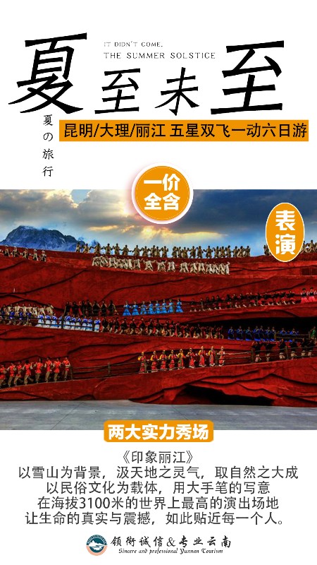 12:50欣赏由著名导演“张艺谋”执导的大型实景原生态民族表演--《印象丽江》。