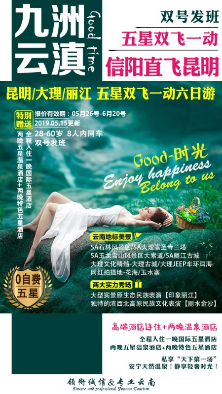 我社依法选择合格且具备相应资质的供应商(酒店、餐厅、景区、旅游车等),游客通过阅读旅游行程安排,完全同意关于旅游产品的餐厅、酒店、景区、旅游车辆等的安排,并承诺不因此投诉和诉讼。(温馨提示:云南餐饮口味以辛辣为主、主食以米饭为主,行程中的餐食,因为地域条件有限,菜肴相对简便、单一,敬请理解,不习惯者,建议提前自行准备干粮;云南气候温和适宜,酒店配备的空调具体开放时间以酒店规定为准,请予以理解。)
