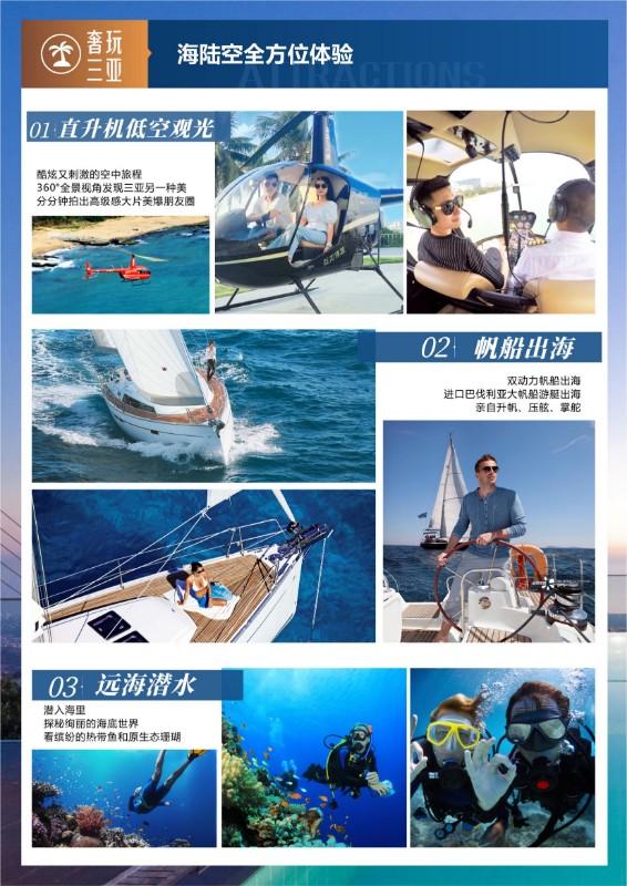 赠海陆空项目(直升机观光+帆船出海+远海潜水)