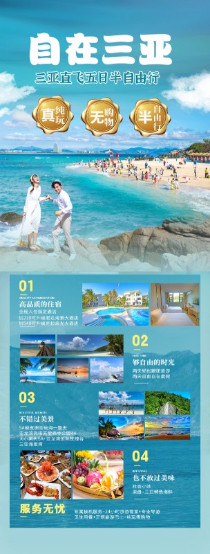 ◎ 行程特色:跟团省心|自由省钱|管家省事;半跟团半自由,纯玩0购;网红玩法;蜈支洲岛,整日慢游;时间自由,服务贴心