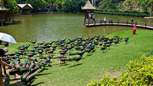 早餐后,乘车前往【野象谷】(索道自理70元/位)在中国要看亚洲野象,必须到西双版纳,到西双版纳看野象,又必须到野象谷。运气好的朋友就可以看到。1996年对外开放至今,后又建有观象架走廊、树上旅馆、高空索道、步行游道等设施以及人工【蝴蝶养殖园】、网笼【百鸟园】等,是西双版纳旅游景点的佼佼者。观看妙趣横生的【大象表演】节目,这些训练有素的看起来笨拙的庞然大物,能过独木桥、会向游客鞠躬表示欢迎,会作头顶地、脚朝天的倒立,会用象鼻作"踢"球表演,会合着音乐的旋律跳舞。游客可骑在象背上或坐在象鼻上,与大象合影,甚至可躺在地上,让大象用脚给你按摩,它们的灵性乖巧,令你不得不拍案叫绝。晚餐享用当地风味餐。