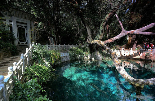 最后游览【黑龙潭】丽江黑龙潭公园也叫玉泉公园,位于丽江古城北象山脚下,从丽江古城四方街沿经纬纵横的玉河溯流而上,约行一公里有一处晶莹清澈的泉潭,即为中外闻名的黑龙潭。是丽江金沙旅游网重点推荐的丽江旅游景点之一,丽江黑龙潭公园俗称龙王庙,位于丽江古城北端象山之麓,黑龙潭内随势错落的古建筑有龙神祠、得月楼、锁翠桥、玉皇阁和后来迁建于此的原明代芝山福国寺解脱林门楼、五凤楼,原知府衙署的明代光碧楼及清代听鹂榭、一文亭、文明坊等建筑。而后