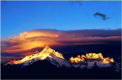 早餐后游览【梅里雪山飞来寺—日照金山】日照金山位于云南省迪庆藏族自治州德钦县西部,是 梅里雪山一带非常美丽的自然奇观,只有在特定的时间、地点才能有幸看到,万丈金光从天而降照射在雪山之巅,犹如一座金色的“布达拉宫”,极为壮观,一般只发生在大晴天的日出时分,雾浓顶观景台、飞来寺与坡均营地是观赏、拍摄日照金山的最佳去处。