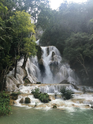 游览【光西瀑布】(含电瓶车)有老挝“黄龙”之称,光西瀑布内因其喀斯特地貌的原因,使得山泉 水如海水一样湛蓝,其中有一处高约 200 多米的瀑布直泻而下,相当壮观,可自带 游泳衣和外国友人一起感受世外桃源,体验高空跳水及森林泳池乐趣。返回琅勃拉邦,途中参观大象基地【布施大象】与大象零距离接触。