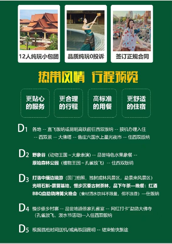 ·根据航班时间送至机场或乘坐高铁返回昆明!结束美丽难忘的西双版纳之旅!