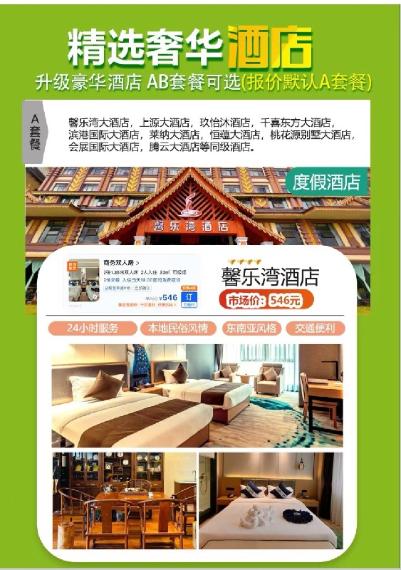 注:早餐为酒店提供,错过早餐时间,不吃不退;正餐不吃不退