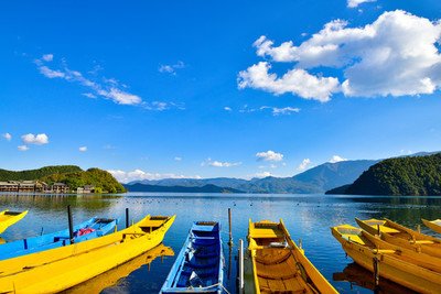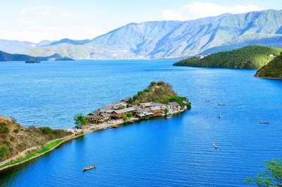 后前往泸沽湖乘坐摩梭人传统的【猪槽船】荡舟泸沽湖,观看鸟语花香的【里务比岛】,观山水一色,万里浮云的绝世美景,后乘车前往【云南女神湾】远观对面的格姆女神山,欣赏另一个角度的泸沽湖美景。