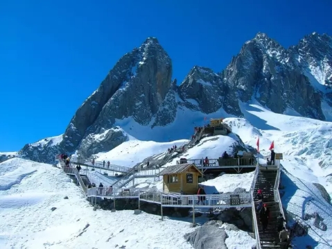 早餐后,乘车前往被誉为世界上北半球纬度最低、海拔最高的山峰【玉龙雪山】,玉龙雪山银装素裹,十三座雪峰连绵不绝,宛若一条“巨龙”腾越飞舞,故称为“玉龙”。接着乘车抵达甘海子停车场,乘坐冰川公园大索道前往的是有“卢塞恩玻璃宫”之称的【冰川公园】, 冰川公园是玉龙雪山现代冰川的典型代表。乘坐冰川公园大索道抵达这冰雪世界,加入冰川净地的派对。之后乘车前往【蓝月谷】它是玉龙雪山冰雪融化成河水从雪山东麓的山谷而下,湖水是透明的蓝,近乎凝固的湛蓝中有些许的碧绿点缀其中,白云连浮,倒映其中恍如仙境一般。最后一站前往历史悠久的【束河古镇】古镇依山傍水,房构屋舍错落有致,环境古朴而清幽。顺着巷道间潺潺流水,走在石板拼接的巷道上领悟人生乐趣。晚餐【升级赠送玛卡炖鸡】,结束行程后亲可以停下来,慢慢享受古镇的宁静与祥和!晚餐后参加丽水金沙《丽水金沙》以舞蹈诗画的形式,荟萃了丽江奇山异水孕育的独特的滇西北高原民族文化气象、亘古绝丽的古纳西王国的文化宝藏,择取丽江各民族最具代表性的文化意象,全方位地展现了丽江独特而博大的民族文化和民族精神。《丽水金沙》共分四场:“序”、“水”、“山”、“情”。之后入住酒店休息,结束一天行程。