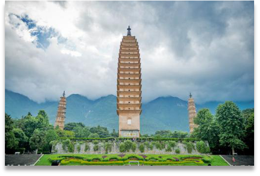 早餐后,第一站乘车前往参观【大理古城】(游览古城时间约3小时左右),大理古城简称叶榆,东西南北各设一门,均有城楼,四角还有角楼。由南城门进城,一条直通北门的复兴路,成了繁华的街市,沿街店铺比肩而设,出售大理石、扎染等民族工艺品及珠宝玉石。街巷间一些老宅,也仍可寻昔日风貌,庭院里花木扶疏,鸟鸣声声,户外溪渠流水淙淙。"三家一眼井,一户几盆花"的景象依然。参观结束前往餐厅享用中餐。【崇圣寺三塔】(游览时间约1个半小时左右)始建于南诏王劝丰祐时期(公元824—859年),先建了大塔“千寻塔”,高69.13米,是座方形密檐式砖塔,共16层。稍后又建了南、北小塔,均高42.19米,是一对八角形的砖塔,都是10级。修建三塔,除了佛家所宣扬的可以成佛外,还有一个重要的原因,是大理古城为“泽国多水患”。古籍《金石萃编》中记载:“世传龙性敬塔而畏鹏,大理旧为龙泽,故为此镇之。”相传古时修建三塔,采用垫一层土修一层塔的方法,塔修好以后,才将土逐层挖去,让塔显现出来,故有“堆土建塔”与“挖土现塔”之说。建塔时所搭的桥,高如山丘,长达10余里。修塔时运力不足,还用山羊来驮砖,如今大理的银桥村,古时称为“塔桥村”。古籍记载修三塔,“役工匠七百七十万,耗四万余金,历时八年建成”。修建三塔后,又建了规模弘大的崇圣寺。崇圣寺以寺中三塔闻名于世,又称“大理三塔”,是中国著名的佛塔之一,三塔由一大二小三座佛塔组成,呈鼎立之态,远远望去,雄浑壮丽,是苍洱胜景之一,游览结束后返回丽江用晚餐,之后入住酒店休息,结束一天行程。