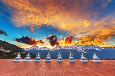 途经【彝族村寨观景台】停车拍照约15分钟,抵达香格里拉县城,享用午餐后,继续乘车前往《梅里雪山》途经有沙坝绿洲之称的“奔子栏”,“奔子栏”是个风景优美的水泊胜地,胜产黄果和桔子还有葡萄。后抵达【金沙江月亮湾】金沙江月亮湾是金沙江遭遇了一座浑圆的金字塔型山峰,金色的江水绕着山峰流出了一个标准的“倒Ω”形。这就是很多摄影作品中的金沙江大拐弯。后继续前往德钦方向,远观《梅里雪山-卡瓦格博峰》带给您的雄伟,梅里雪山在藏区称“卡瓦格博雪山”,当地的藏族人民为它命名,赋予它神性,又与它世世代代保持着血肉联系。