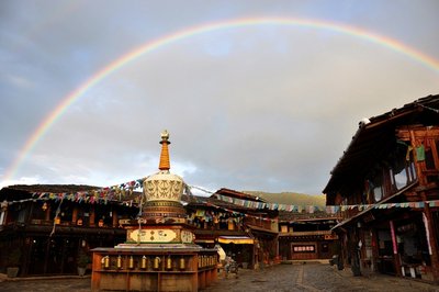 后游览【独克宗古城】合力转动世界上最大的转经筒,为家人祈福!