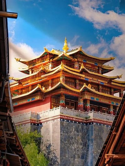 古城内的街道狭窄而曲折,两旁是古色古香的民居和商铺,这里保存着浓厚的藏族风情。在古城的巷弄中,您可以看到传统的藏族建筑,如白墙红瓦、木雕窗花、飞檐翘角等。在街上漫步,您还会听到传统的藏族音乐和歌舞表演,感受到浓厚的藏族文化氛围。在这里,人和狗都那么懒散,一起晒着太阳,感受时间流淌的痕迹,都如此地满足。