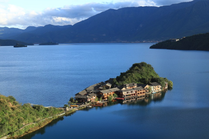 餐后前往泸沽湖(车程1小时左右)到达泸沽湖观景台,远观泸沽湖格姆女神山、入住小落水摩梭村落。