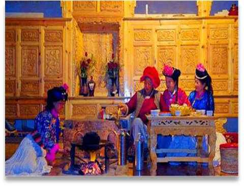 当您一饱眼福之后接着乘车抵达【摩梭走婚宴】摩梭族走婚名闻遐迩,听起来颇具神秘感,在这您能领会母系氏族的民族文化。晚餐后乘车观看【篝火晚会】是泸沽湖的传统娱乐项目,跳“锅庄”舞是摩梭青年男女相互认识、结交“阿注”的大好良机,通过跳舞,他们彼此相识、相恋、相知,直到结成“阿注”婚姻(即母系氏族的走婚形式)。锅庄舞就是摩梭人的“打跳”,又称“甲搓舞”。表演结束后乘车返回酒店,结束行程。