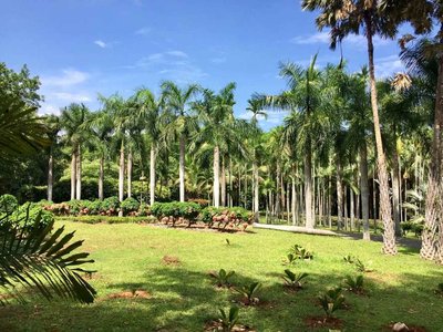 之后乘车前往【热带花卉园】(不含电瓶车40元/人)(景区内的商业板块与旅行社无关)主要体现了热带植物花卉、热带橡胶和热带水果及周总理纪念碑群文物区四大主题。目前开放的景点有叶子花园、稀树草坪区、周总理纪念碑、热带棕榈区、空中花园、观鱼、热带水果种质园、五树六花园、科技陈列馆、巴西橡胶种质资源库等景点。在园中,可以看到叶如簸箕大的王莲,形如鞭炮的炮仗花,似鸟儿飞翔的天堂鸟,叶似花花是叶的三角梅,像蛋黄色的鸡蛋花,有会跳舞的跳舞草,会含羞的树和含羞的草,会下雨的雨树,使口感变味的神秘果等热带奇花奇树;可以参观科技陈列馆了解橡胶树种植历史和发展前景及它与人民的日常生活有何种关联?可以通过现场割胶演示,来亲身体验如牛奶般的胶乳是如何流淌出来的;可以通过视察碑、会晤碑等纪念碑群了解敬爱的周总理对热作所科研人员的关怀及与缅甸吴努总理友好会晤的情形;还可以认识丰富的热带特有水果,享受那天然甜美的滋味。