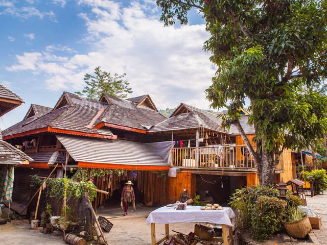 【喊沙傣寨】映入眼帘的是金碧辉煌的喊沙寨门,寨子里的姑娘婀娜多姿,高盘着束发、筒裙长到脚面,展现着傣族女子优美的身姿。路两边生长着许多热带树木和热带果树,村寨的石板路干净而平整的,小路两旁是一户户院落的篱笆墙,墙上开满了鲜花,一座座简单古朴的傣族竹楼依稀可见,透过篱笆望去庭院与竹楼相映成趣、落落大方,古朴而素雅。