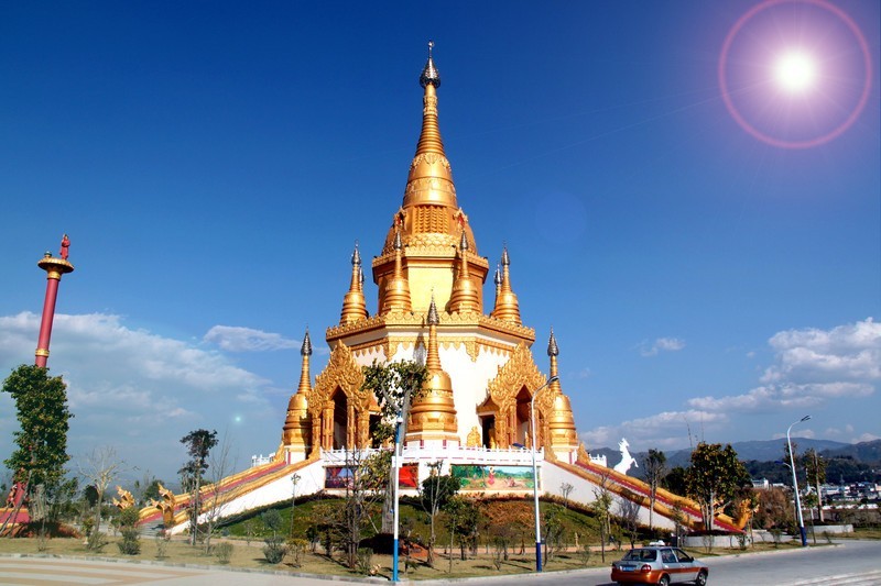 【勐焕大金塔】是德宏最古老的佛教建筑、佛事活动场所和旅游景点。相传很久以前,每当月明星疏之夜,在金塔地基处,地就发出光芒,极为奇丽,令世人大为惊叹。