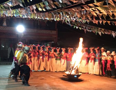 晚餐特别安排【南涧跳菜】,南涧跳菜属于非遗文化遗产,席间演唱民族敬酒歌。之后参加民族换装篝火晚会,让游客拿上道具,学习体验白族文艺瑰宝“霸王鞭”舞蹈!并跟随舞蹈演员一起载歌载舞,欢快的围着篝火打跳!后入住大理临海酒店(如遇旺季房紧张我社安排常规酒店)。