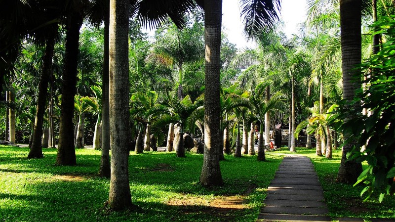 乘车前往【热带花卉园】(含电瓶车40元/人)(景区内的商业板块与旅行社无关)主要体现了热带植物花卉、热带橡胶和热带水果及周总理纪念碑群文物区四大主题。目前开放的景点有叶子花园、稀树草坪区、周总理纪念碑、热带棕榈区、空中花园、观鱼、热带水果种质园、五树六花园、科技陈列馆、巴西橡胶种质资源库等景点。在园中,可以看到叶如簸箕大的王莲,形如鞭炮的炮仗花,似鸟儿飞翔的天堂鸟,叶似花花是叶的三角梅,像蛋黄色的鸡蛋花,有会跳舞的跳舞草,会含羞的树和含羞的草,会下雨的雨树,使口感变味的神秘果等热带奇花奇树;可以参观科技陈列馆了解橡胶树种植历史和发展前景及它与人民的日常生活有何种关联?可以通过现场割胶演示,来亲身体验如牛奶般的胶乳是如何流淌出来的;可以通过视察碑、会晤碑等纪念碑群了解敬爱的周总理对热作所科研人员的关怀及与缅甸吴努总理友好会晤的情形;还可以认识丰富的热带特有水果,享受那天然甜美的滋味。