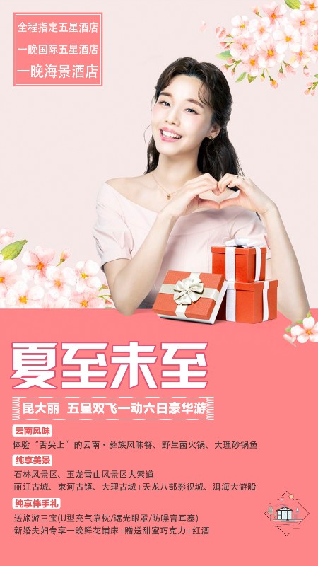精华景区一“玩”打尽,独一无二的体验:5A石林风景区、5A玉龙雪山风景区大索道、4A景区玉水寨、5A世界文化遗产—丽江古城、大理文化精髓—大理古城、武侠小说名邦胜地--大理天龙八部影视城、洱海大游船、九鼎源泉之地--束河古镇