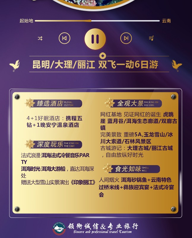 4、云南地处边陲,个别地区设施与大都市相比存在较大差距,请您见谅并作好心理准备。旅游是一件身心愉悦的体验过程,请您保持快乐的心态,将身心投入美伦美幻的景色和那多彩的民族风情中。