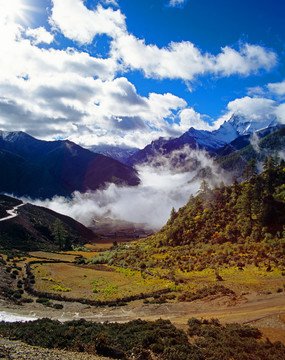 【洛绒牛场】洛绒牛场位于四川省的洛绒牛场被“日松贡布”三座神山环绕,贡嘎河从草场穿梭,林间溪流潺潺,与牧场木屋交相辉映,构成了一幅原始而又迷人的景色,令人们进入返朴归真的境界。