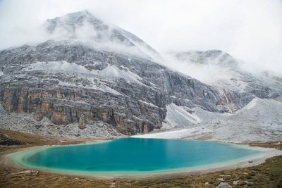 【牛奶海】牛奶海位于央迈勇神山脚下的山坳里,是一个面积不大状如水滴的古冰川湖。这里四周雪山环绕,湖水清莹碧蓝,湖畔则是一圈乳白色环绕,故称牛奶海。