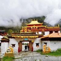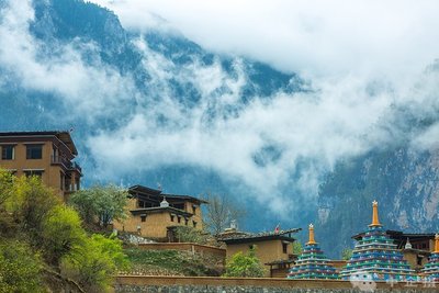 【冲古寺】海拔3880米的冲古寺位于仙乃日雪峰脚下,建寺年代已无从考证。每日早上及下午喇嘛都要熏香念经,诵经声和法豉声在寂静的山谷中回响,使这里显得更加神圣和神秘。