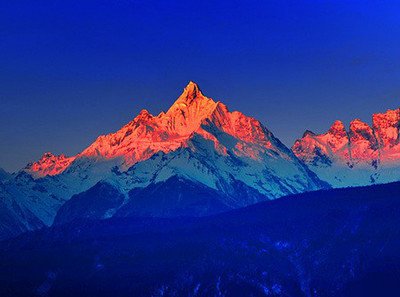 自愿早起,早餐后在飞来寺观景台观【梅里神韵】“日照金山”(约30分钟),梅里雪山主峰卡瓦格博峰,是朝拜梅里雪山十三峰烧香祈福的地方。站在飞来寺观景台上,这里是观看梅里雪山“日照金山”景观的好位置,来这里观景、拍照的游客越来越多,于是人们在此建造饭店客栈,渐渐的这里成了滇藏线旁的一处游客集散地,人们开始把寺庙周围的村子称为飞来寺。运气好的话,日出的时候,阳光洒在梅里主峰上,雪山仿佛放出金色的光芒,这就是壮观的日照金山美景!