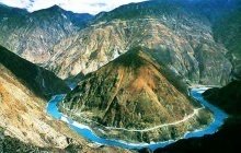 然后跨越【金沙江】抵达茶马古道重镇——奔子栏,途中观中国四十大自然景观之【月亮湾大峡谷】(约20分钟),月亮湾又叫金沙江第一湾,是云南和四川的分界线,一边是云南省迪庆州德钦县奔子栏镇,另一岸则是四川省得荣县子庚乡。 在这川滇要塞,围绕着金字塔般的日锥峰潇洒地画了一个“Ω”字形的大拐弯,成就了天下奇观——金沙江第一湾。在奔子栏镇月亮湾山头上建起了一座漂亮、宽敞的观景台,站在这里,俯瞰金沙江第一湾全景,使人在心旷神怡、荡气回肠之际,不能不惊叹自然造化的神奇。