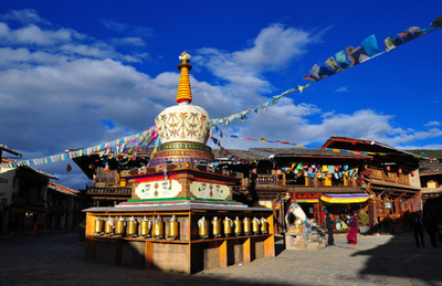 贵宾按照提前约定时间起床,早餐后,前往【独克宗古城】参观龟山公园,合力转动世界最大转经筒,为家人祈福,在自由的时间里,穿一次藏服,当一次卓玛。