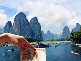 兴坪风光打卡二十元人民币背景图案