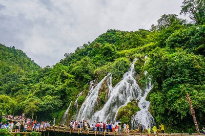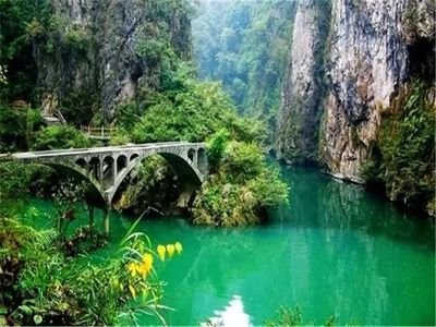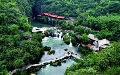 天河潭景区内,拥有国内最宽的钙化滩—卧龙滩钙化瀑布,穿天生桥,游览喀斯特地貌代表作水洞、旱洞。